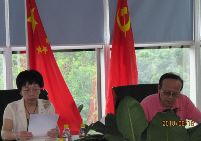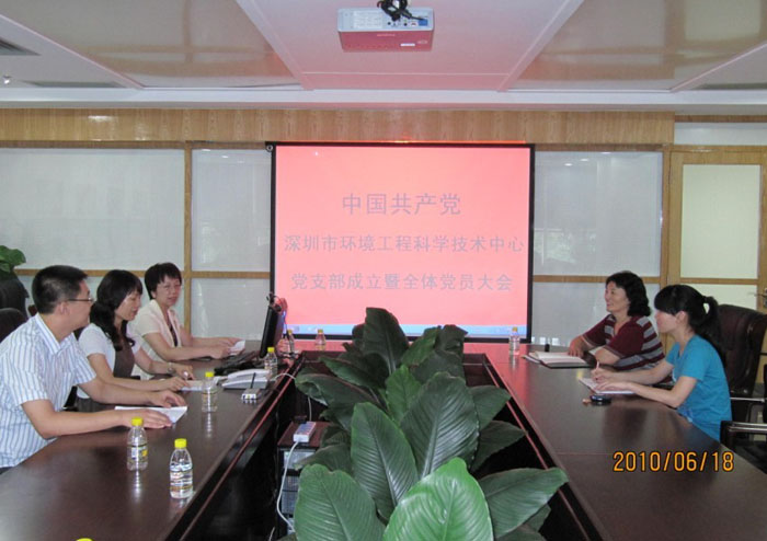 2010年6月18日在環(huán)科中心會(huì)議室召開(kāi)中國(guó)共產(chǎn)黨深圳市環(huán)境工程科學(xué)技術(shù)中心支部委員會(huì)成立暨全體黨員大會(huì)。中心決策層領(lǐng)導(dǎo)也親臨現(xiàn)場(chǎng)表示熱烈祝賀!大會(huì)傳達(dá)了控股公司黨委關(guān)于環(huán)科中心支部委員會(huì)成立批復(fù)文件及控股公司轉(zhuǎn)發(fā)深圳市國(guó)資委《關(guān)于在國(guó)有企業(yè)開(kāi)展?fàn)巹?chuàng)“四強(qiáng)“黨組織爭(zhēng)做“四優(yōu)”共產(chǎn)黨員活動(dòng)的通知》;會(huì)議聽(tīng)取了支部委員會(huì)副書(shū)記鐘廣華同志做第一屆黨支部近期工作報(bào)告及2010年下半年黨支部工作計(jì)劃,并對(duì)中心下半年開(kāi)展?fàn)巹?chuàng)“四優(yōu)”四強(qiáng)“活動(dòng)進(jìn)行了動(dòng)員與部署。